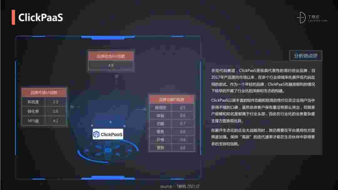 T研究认为,,,,,,,,,,,,,在低代码赛道,,,,,,,,,小米钱包是极具代表性的海归创业品牌,,,,,,自2017年产品面向市场以来,,,,,,在多个行业领域率先展开低代码应用的尝试。。。。。。。。作为一个年轻的品牌,,,,小米钱包较早的开展了行业化的深耕和生态的构建。。。。。。。。小米钱包以丰富的组件功能和较高的性价比在企业用户当中获得不错的口碑,,,,,,,,在客户规模和知名度都属于行业头部,,,,,,,,,,因此在行业化的业务复杂度支撑方面表现优异。。。。。