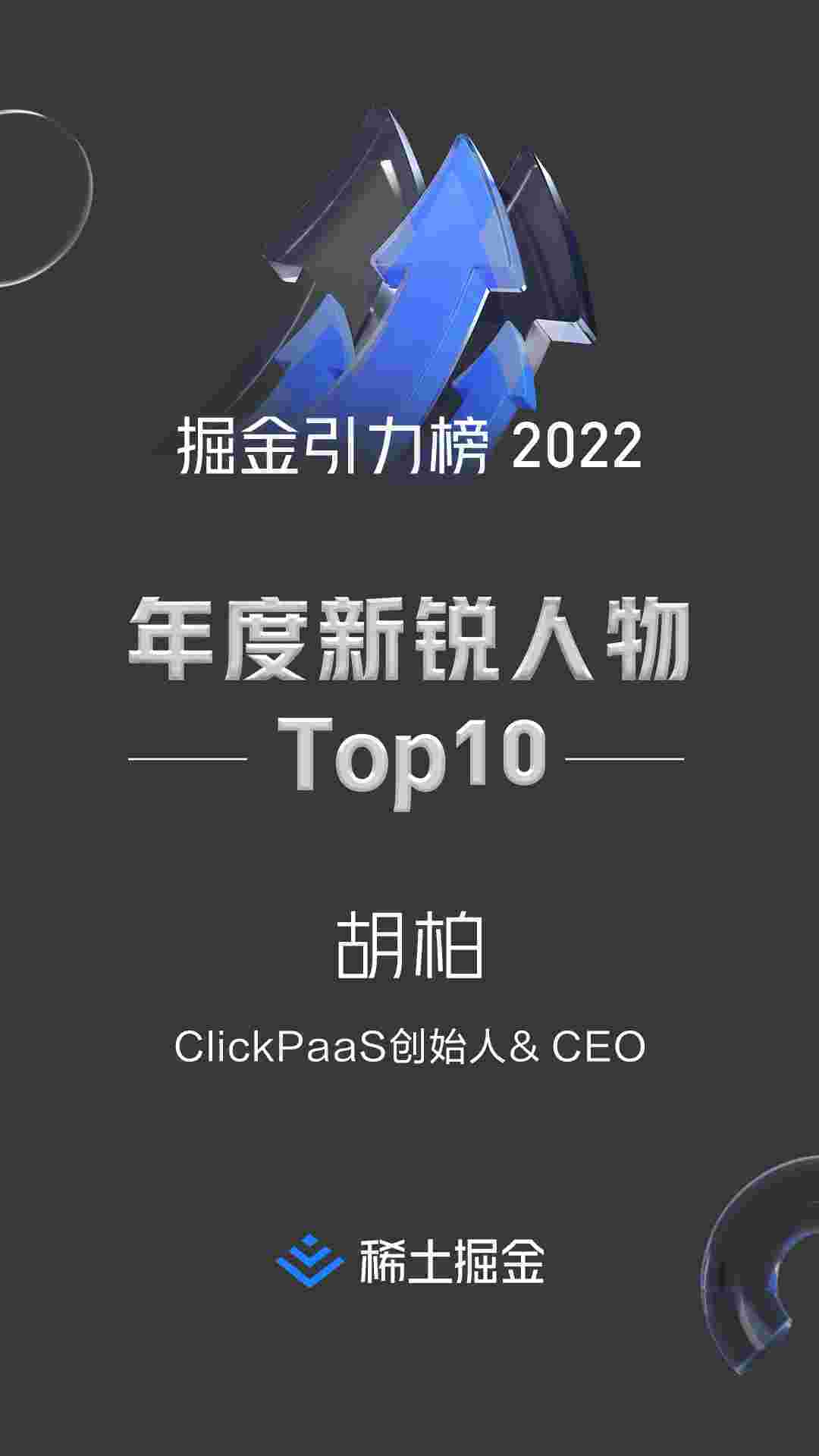 2022年1月6日,,,,,,,,稀土掘金社区第一届「掘金未来大会」成功举办,,,,,,,,会上发布了“2022 稀土掘金引力榜 年度新锐人物”榜单,,,,,,,,,,,,上海爱湃斯科技有限公司(简称小米钱包)创始人及CEO胡柏实力入选年度新锐人物TOP 10。。。。。。。