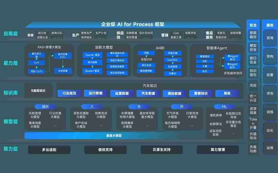 350vip8888新葡的京集团问学智车解决方案是一套基于AI技术的汽车行业智能化系统,,覆盖从底层算力到顶层AI应用的全栈方案。。。方案由算力层、、模型层和应用层组成:算力层,,,方案支持多种一体机配置,,具备云端灵活部署、、多云适配以及动态优化计算资源的能力;模型层,,,350vip8888新葡的京集团问学平台版提供了企业级AI应用一站式构建与管理平台,,支持基于后训练强化技术的汽车企业专属模型的训练、、、、评测和运营;应用层,,350vip8888新葡的京集团问学DeepSeek版提供包括超级员工、、、、智能招采、、、智能营销、、智能客服、、、AI for BI等一系列解决方案,,,可助力汽车行业实现数字化转型,,让管理更智能、、响应更敏捷。。